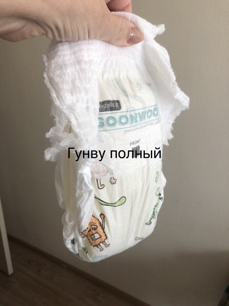 Вдруг кому пригодится. Дано — ребенок 15 кг, но высокий. Много писающий. Ночью кушающий до сих пор. И да, не горшочный. Синергетик — мне показалось, что резинка на животе туговата. Если малыш пухляш, то ему будет жать. И на попе узкие. Ночью протекли, несмотря на то, что меняла 2 раза. Наполнились достаточно сильно. Цена — 36 шт. около 1000 р. Без запаха совершенно. Рисунок скучный. Тоненькие, легкие. На день идеально. Липкая лента есть. Гунву. Понравились больше гораздо. Цена — 38 шт. 789 руб. Тоже тонкие. Сидят пошире. Резинка на животе тянется лучше. На попе сидят шире. Без запаха, липкая лента есть, рисунок — смешные монстрики яркие. Ночью меняла 2 раза, не протекли, надулись не очень сильно. Для деток, которые столько не пьют, сколько мой, точно будет супер. Это моему, как ни крути, любой подгузник менять придется. Вообщем, Гунву мы оценили больше.
