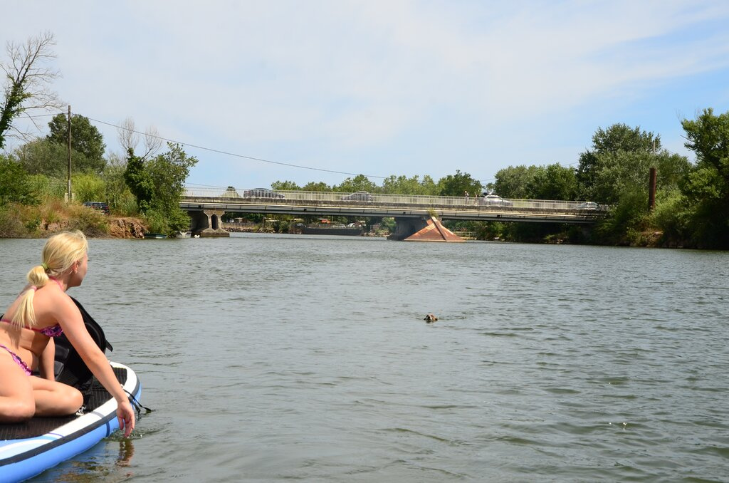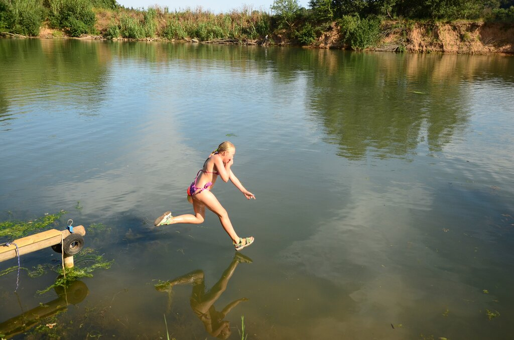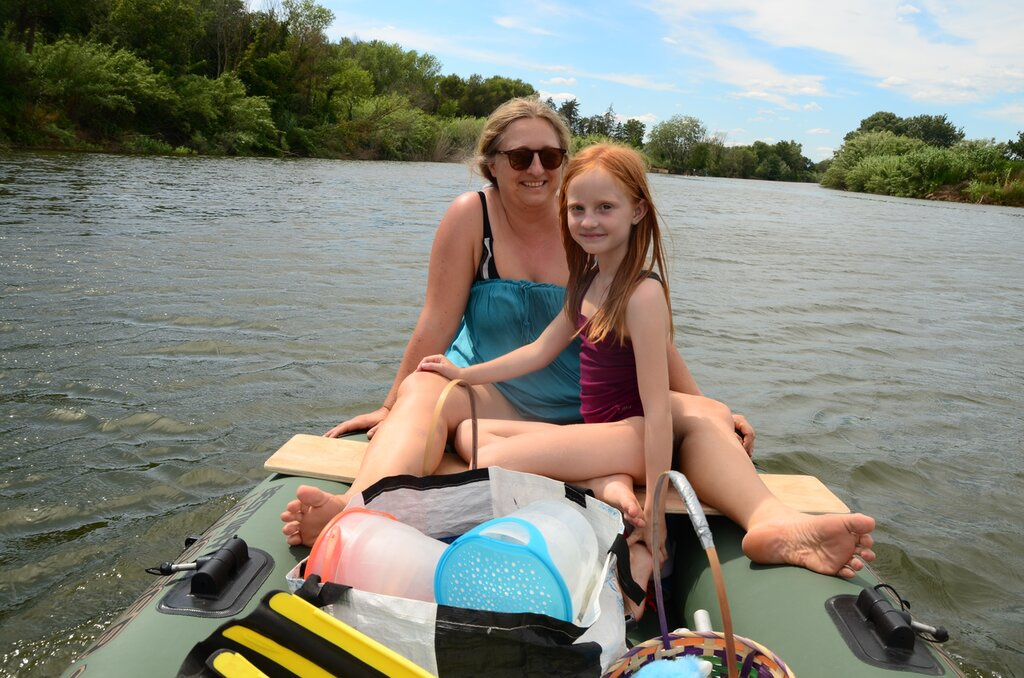Лето, каникулы, хорошая погода. Красота!!! Мы стараемся отдыхать по полной. Надоела в одни и те же места ездить, решили покататься по речке. Поехали в Эгю( город от нас где-то час на машине), там река. Вот к ней-то мы и поспешили. Взяли с собой лодку и доску. Первым же делом на речке Руслан поймал змею и мы поразглядывали. Потом отпустили.