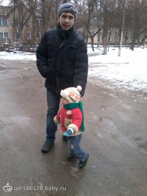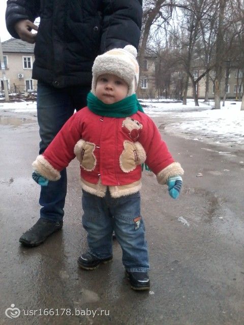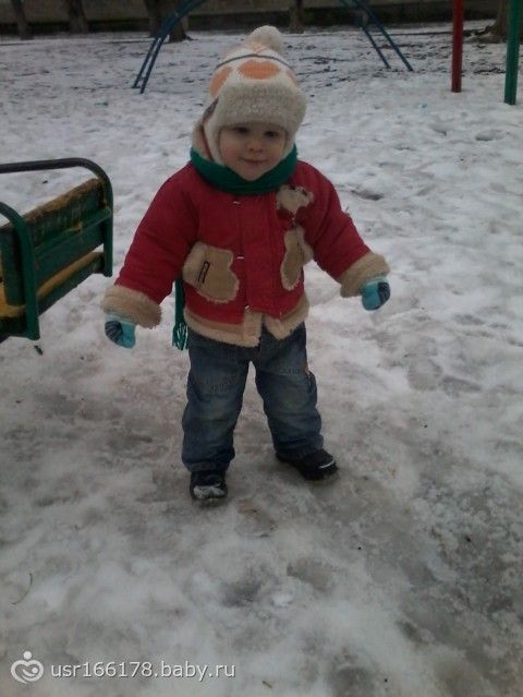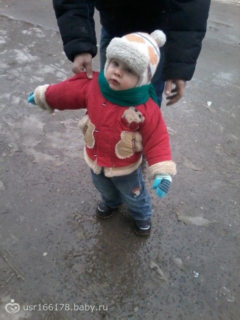 сегодня гуляла с сыночком, погода прям весенняя тепло, если бы конечно не мокрый снег и не слякоть было бы вообще супер и сказачно, гуляли сегодня целый час, не как раньше пол часа, может быть и больше погуляла если бы сынок после дневного сна раньше проснулся, сегодня проспал днем целых 3 часа вместо положенных 1.5, разоспался сегодня мой зайчик, наверное из за того что рано проснулся утром, проснулся сегодня в 7.30, хотя раньше просыпался в 8.30 или около 9.00, но я все это списываю на зубы, так как последнее время стал такой капризный мама не горюй, хотя зуб 10 почти вылез, а других пока незамечала, ну да ладно, вернемся к погоде, решила сегодня сыночка одеть по весеннему, одела ему джинсы и осеннею куртку, под джинсы одела еще штанишки т.к любим кататься с горки, в зимнем камбезе ему не удобно ходить постоянно на руки просился, а сегодня сам ходил наверное почувствовал свободу, прошел сам сегодня наверное целый километр. ну и немного фоток.