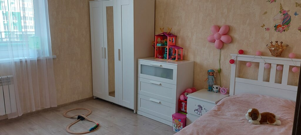 Делали комнату для дочки 5 лет с расчетом на начальную школу а что то и до подросткового возрастут останется из мебели. Купили мебель какую я хотела, но когда все поставили как то не гармонично смотрится... Чего то не хватает. В дальнейшем планируем поменять обои и постелю ковер круглый по середине комнаты. Пока ремонт от застройщика. Что бы изменили? Думаю попробовать переставить комод на место стола а стол на место комода поставить, он как раз ровно туда встанет и не будет свободного места между мебелью. Но не знаю станет ли лучше вид от этого или нет.... В стеллаже с книгам порядок навела, сейчас там нет хауса как на фото) Шторы плотные есть, просто были в стирке когда делала фото) Комната в живую просторнее нежели на фото получилось. Но из за полноразмерной кровати особо с мебелью не поиграешь...