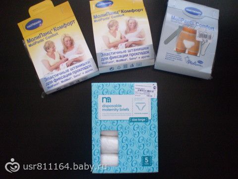 6. Трусики одноразовые 5 шт. — 180 руб. покупала в Mothercare и 3 шт. многоразовых — продаются в аптеках от 50 руб.