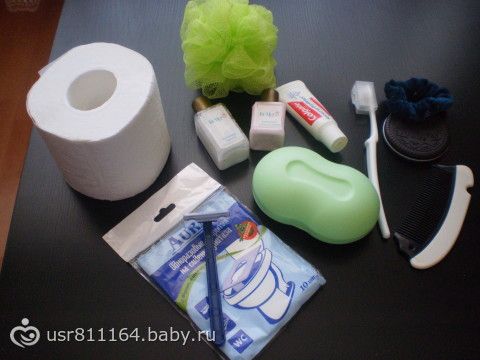 8.Мыльные принадлежности: туалетная бумага мягкая, насадки на унитаз — 1 упаковка, зубная паста, зубная щетка, шампунь, гель для душа, мочалка, бритва, мыло, резинка, расческа, зеркальце.(декоративную косметику довезут потом на выписку)