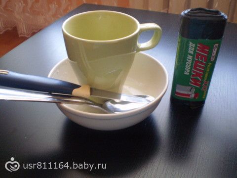 11. посуда — чашка, тарелка, ложка, вилка, нож. и мусорные мешки (под всякий мусор, под памперсы и т.д.)