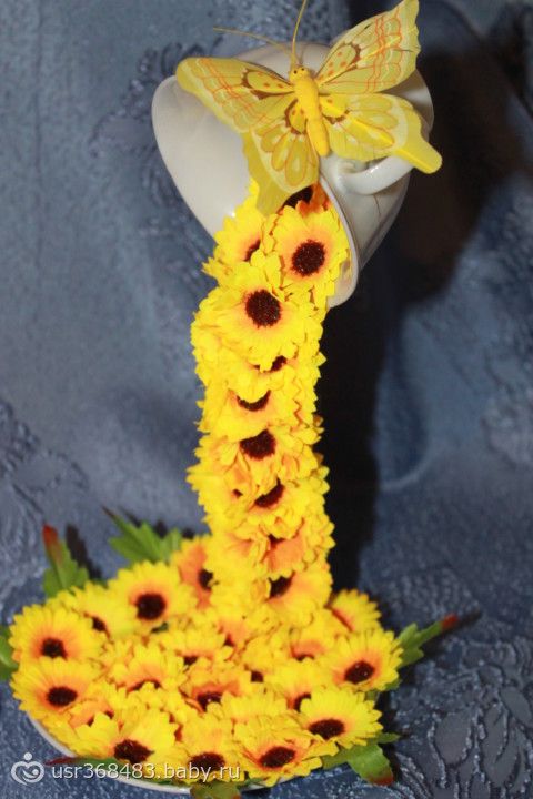 Купила самый толстый двухжильный провод, приклеила его к чашке и блюдцу пистолетом с клеем, и все цветочки тоже пистолетом