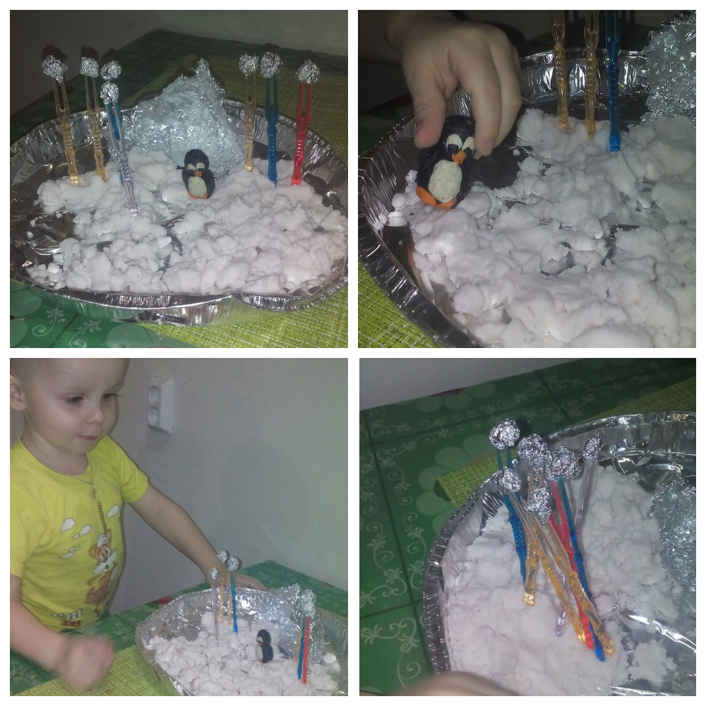 -Сделали с сыном самодельный снег из соды и геля для душа, … Читать далее