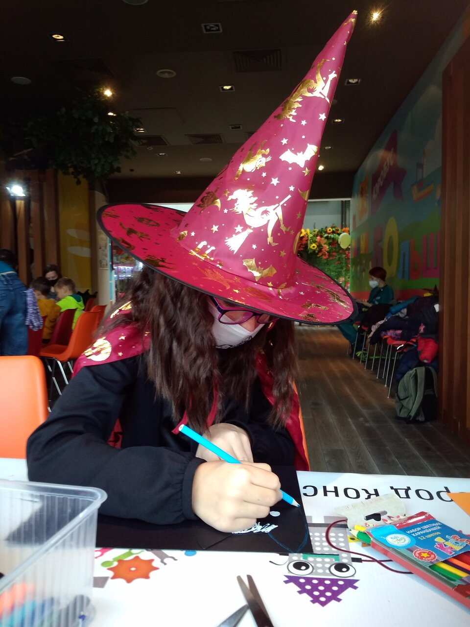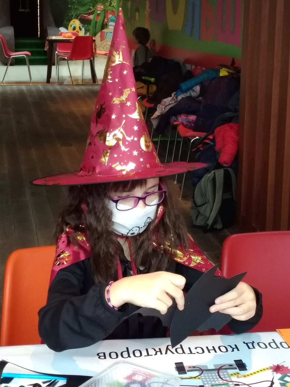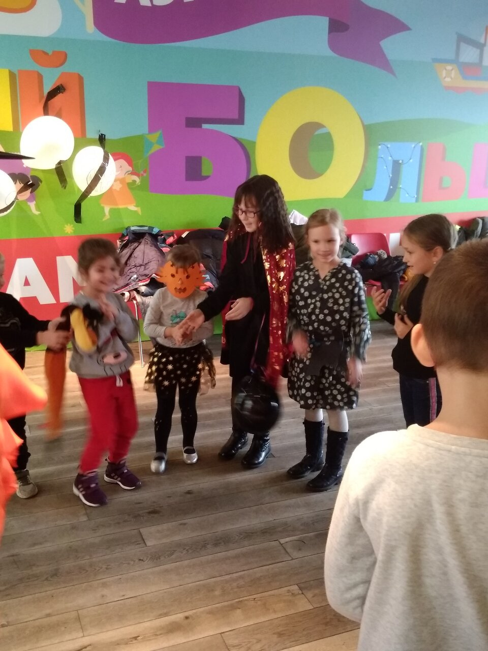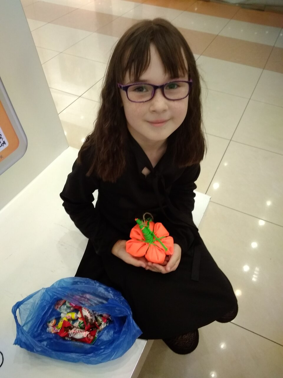Мастерилка закончилась, мы уже собрались домой, когда выяснилось, что одна из организаторов хочет повести по ТК оставшихся детей (и своих в том числе) в поисках сладостей. Дочь тоже пошла с ними.