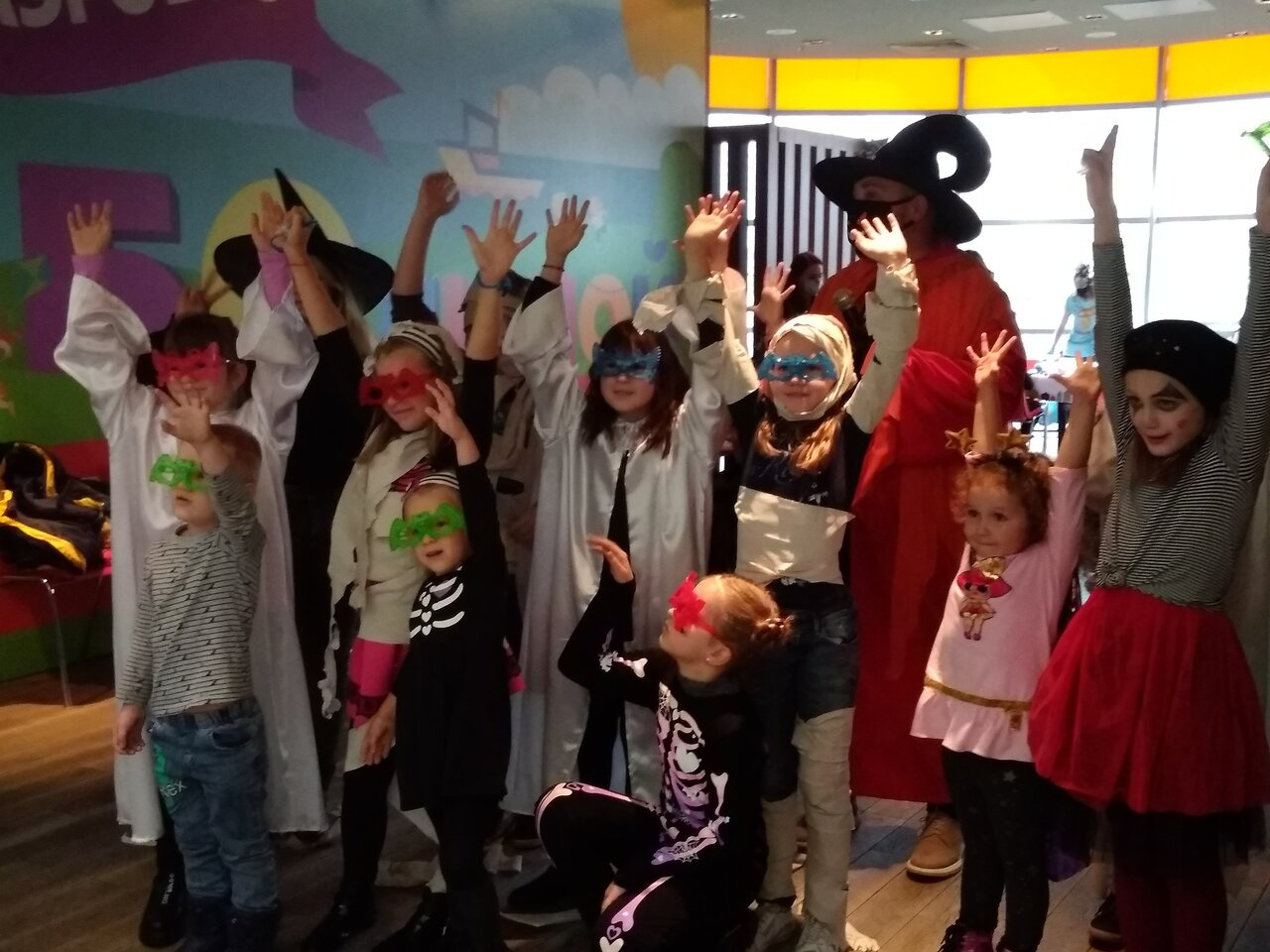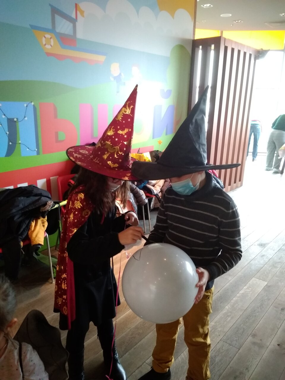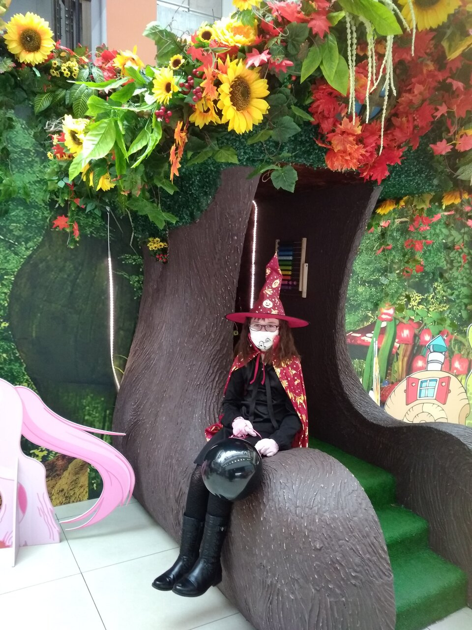 Мастерилка закончилась, мы уже собрались домой, когда выяснилось, что одна из организаторов хочет повести по ТК оставшихся детей (и своих в том числе) в поисках сладостей. Дочь тоже пошла с ними.