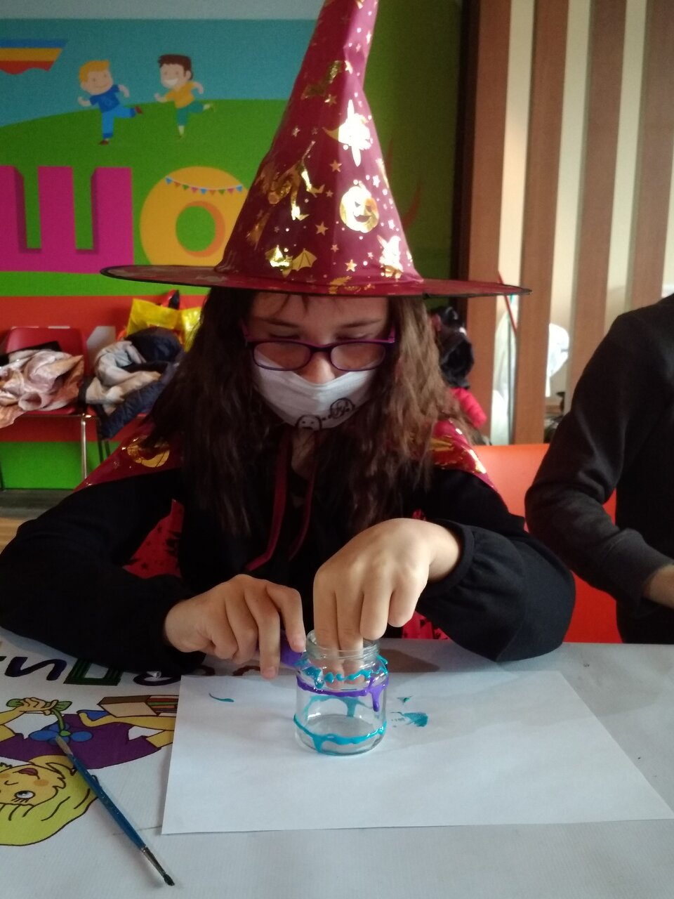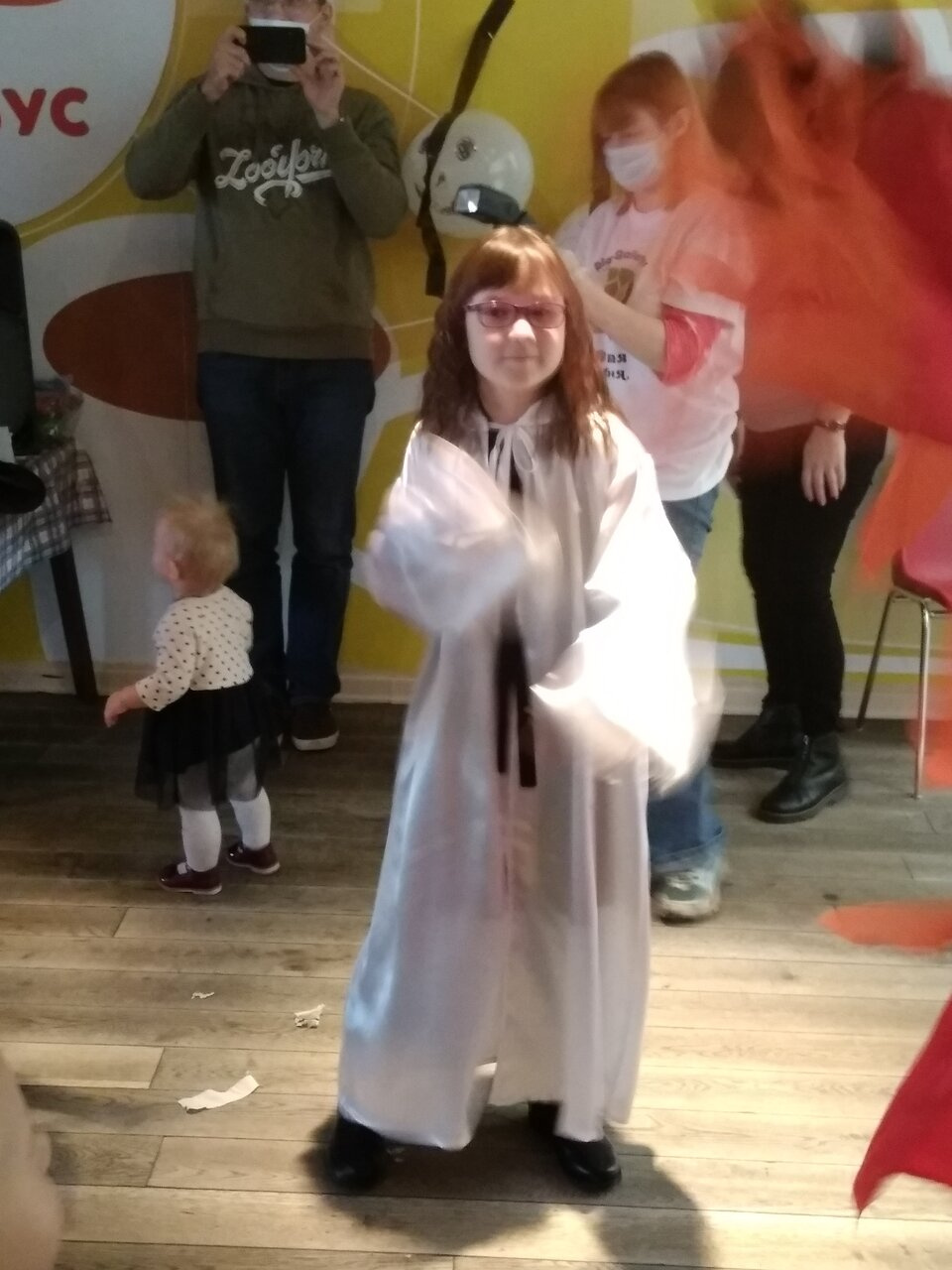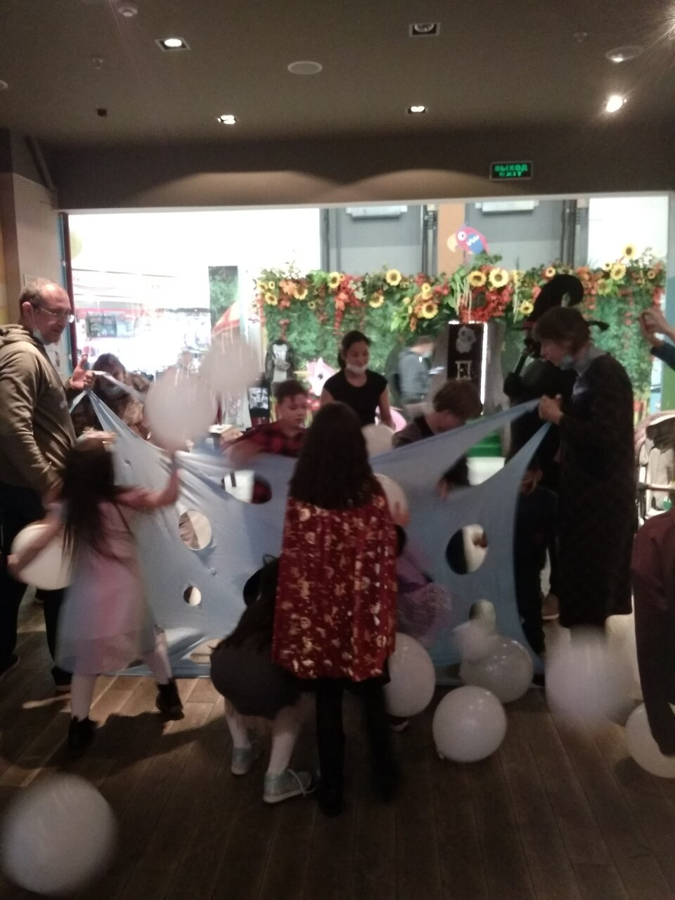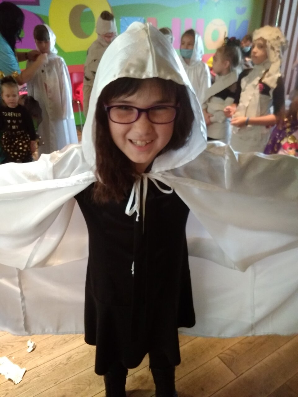 Мастерилка закончилась, мы уже собрались домой, когда выяснилось, что одна из организаторов хочет повести по ТК оставшихся детей (и своих в том числе) в поисках сладостей. Дочь тоже пошла с ними.