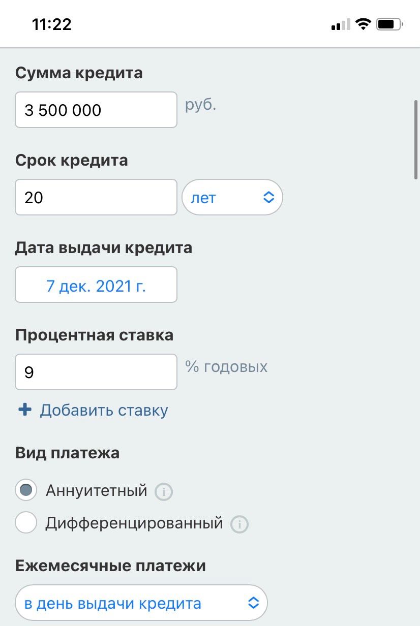 Зачем вы ставите первое число если у вас по договору не первое ??♀️ вы в этих окнах выставляете параметры ровно такие, какие у вас в договоре. А для указания внесений досрочных платежей там отдельное окно
