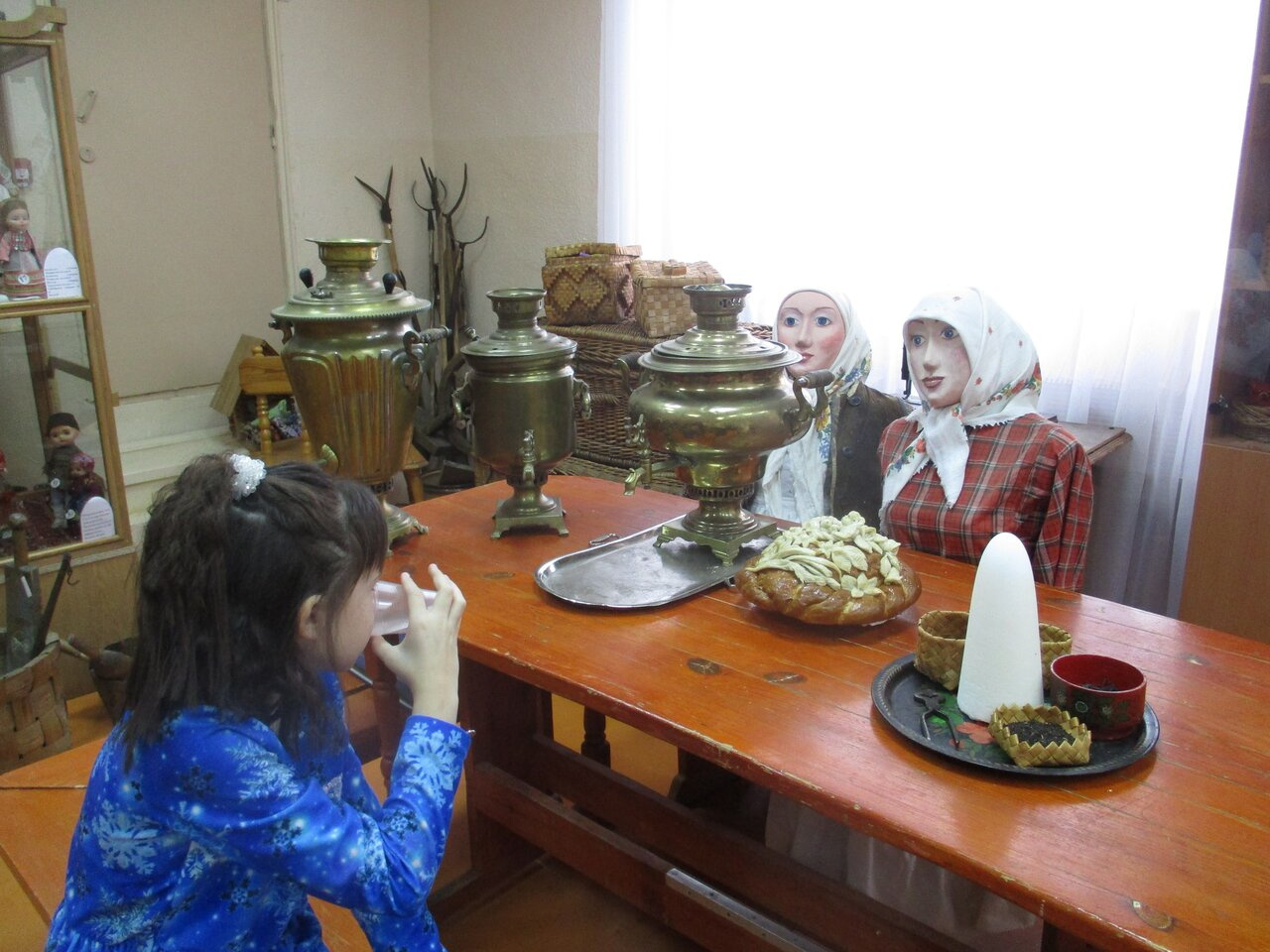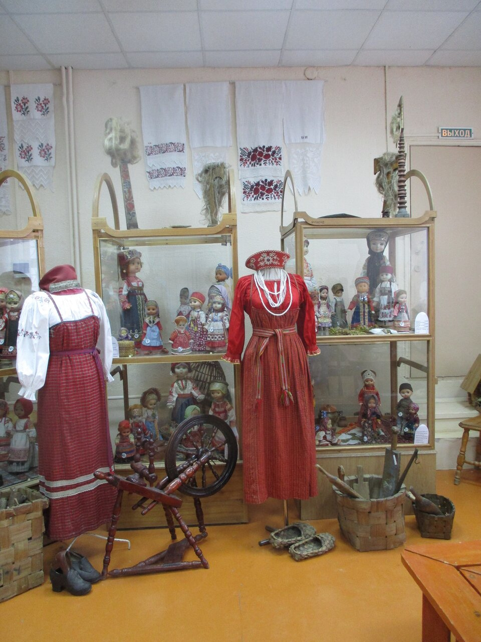 Сам же музей напоминает краеведческий. В нём на куклах представлена одежда разных народов и времён. А так же немного предметов быта и домашней утвари. На экскурсии нам рассказали, кто какую носил одежду, головные уборы. Чем занимались. Какие существовали обычаи и обряды. Экскурсия получилась индивидуальной. Иринке там сахарная голова приглянулась. Но купить её в Костроме мы не смогли.