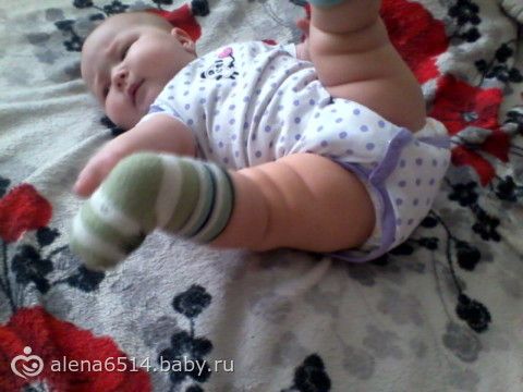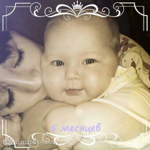 сегодня нам исполнилось 5 месяцев. мы столько уже умеем тянемся за игрушкой, на коленках сидим за столом когда чай пью или с мамой(моей) просто на кухне разговариваем доча стучит ручками по столу, сейчас научились пищать такая пискля стала, еще ножки к верху поднимает ручками хватает, а теперь еще и в рот тащит, крутится уже как юла ножки вверх поднимает ручками хватает и перекатывается на бок акая смешная. не давно освоила новый звук сначала она у нас щелкала, сейчас как то губками как хлюпает как будто, поправились мы за две недели на 100гр всего но для нас это нормально при весе 7600))))))и выросли на см сейчас 62 уже))))сейчас наверно еще поправились, мы были на приеме 25фев вот сразу и взвесили на 5 мес чтобы второй раз не приходить.еще поставили вторую прививку акдс переснесли славу богу хорошо без темп, правда не веселые были чуть поплакали а спали хорошо, сейчас любимая наша поза ноги к верху рачками за пальцы ног и так лежит прикольная такая