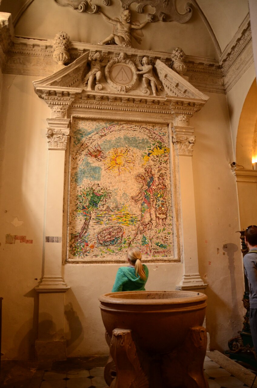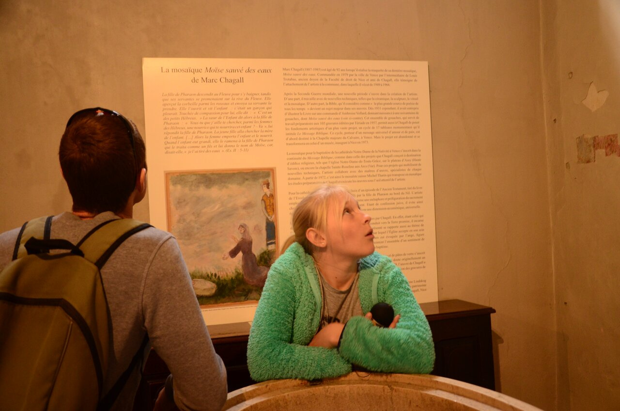 В городе Ванс жил какое-то время Марк Шагал, так что в этой церкви есть и его мозаика. Спасение Моиссея.