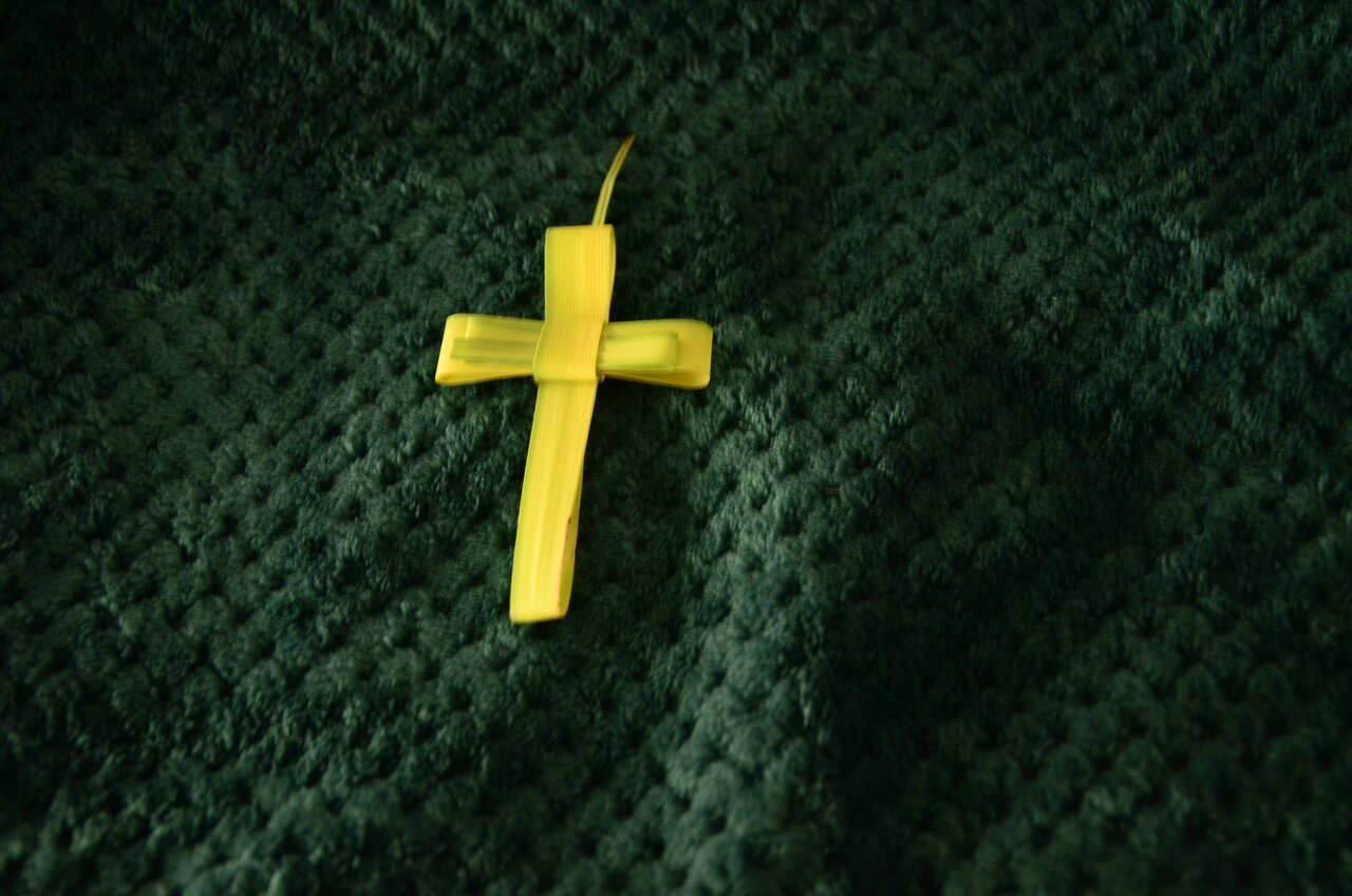 Сейчас неделя перед Пасхой( католической), у церквей продают поделки из пальмовых листьев. Мы купили по одной( детям и подружке девочке, в гости заходили к ним).