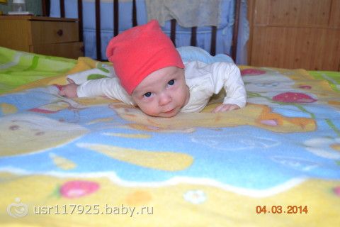 Перевернулся со спинки на животик… долго мы к этому шли, никак у него не получалось. Вчера с животика на спинку один раз перевернулся, но я этого не видела. С бабушкой переворачивался. А сегодня с 5 утра все тренировался, пока я рядом дремала...