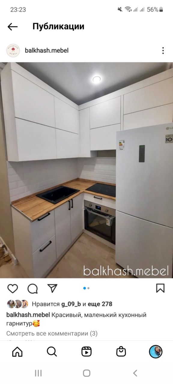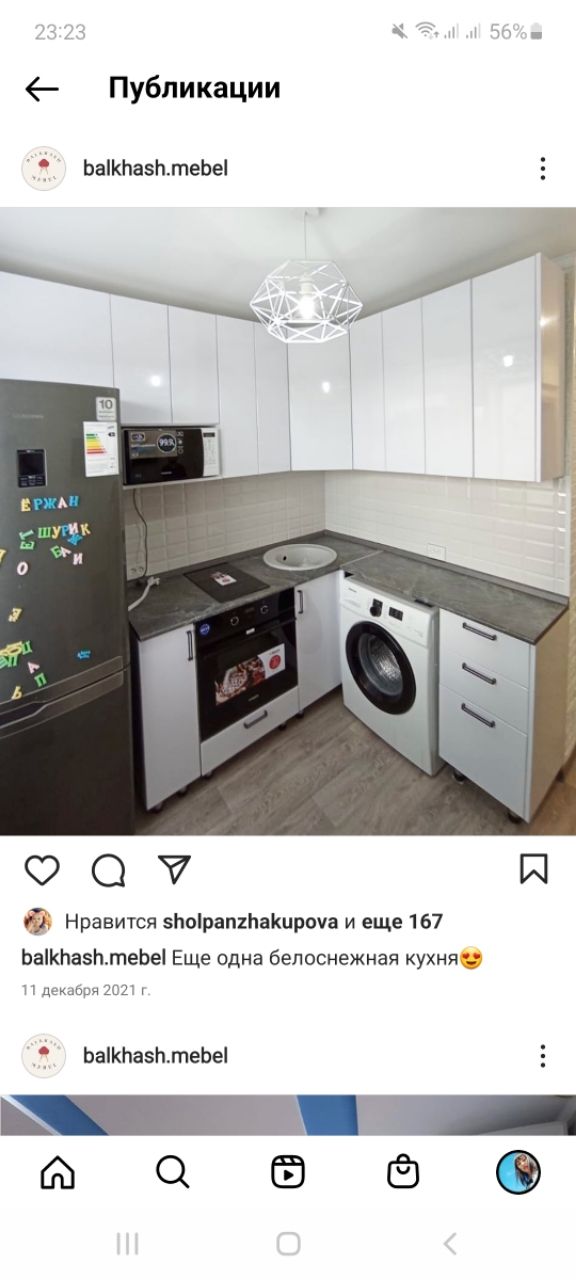 Кухня 14 м, но рабочих поверхностей всего 2: на посудомойке и над одним из шкафов. Мне хватает. Там где холодильник на вашей картинке у меня пусто. Если в личку напишите, скину фото. Сейчас не дома