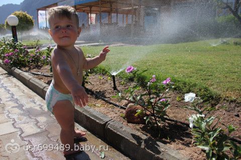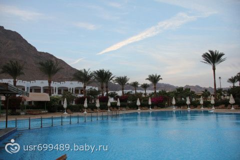 В отеле есть три бассейна, хотя их на самом деле четыре, но четвертый в самом дальнем углу территории, поэтому он как бы и не существует. :) Три бассейна имеют каждый свои прелести. Один — стойку бара прямо в воде, второй — горки, третий — фонтаны в виде грибов. и он мелкий. В каждом бассейне есть детская зона, где уровень воды сантиметров 60 всего. Наверное, я не замеряла. :)