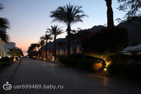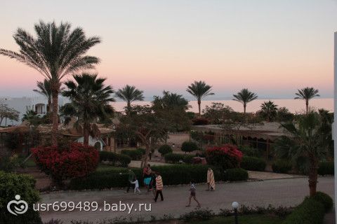 Три ряда белых двухэтажных корпусов расположены по линии перпендикулярно к морю. Между вторым и третьим рядом расположены как раз бассейны, бары. Дорожки выложены брусчаткой, и очень много цветов. Дервья, кустарники, цветы. Ну и конечно же пальмы :) Чисто, аккуратно, в первой половние дня — полив газонов и обработка территории гадостью от всякой ползучей и летучей живности.