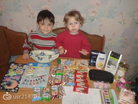 а это все вместе Ренат ухватил вафлю довольный ну и Ренат в коробке от посылке долго не могла его от туда вытянуть. Спасибо тебе огромное за столько радости и эмоцийОтдельная благодарность организатору Анютки