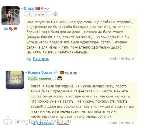 я полностью согласна с первым ее комментарием! если бы вы мне написали, мы бы сами разобрались с этой проблемой, не разнося меня на весь бэби ру! я БЫ связала вашим дочам очаровательные подарки!!! а так вышло очень некрасиво… меня публично распяли, значит все мои покупки оказались не по нраву...
