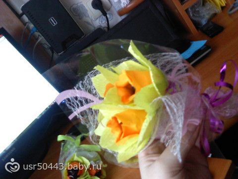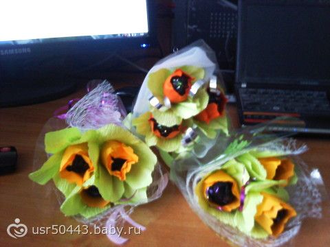 на все руки от скуки, крутила букетики из конфет-подружек поздравить))… решила похвастать