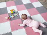 Пазлы но только которые без внутрених еше пазлов. Однотонные 3 цвета взяла.и в комнате отлично смотрится и она ими до сих пор играет. Стирать их легко в стиралке по 9 шт спокойно раз в неделю или 2.Большой ковёр рада что не взяла.