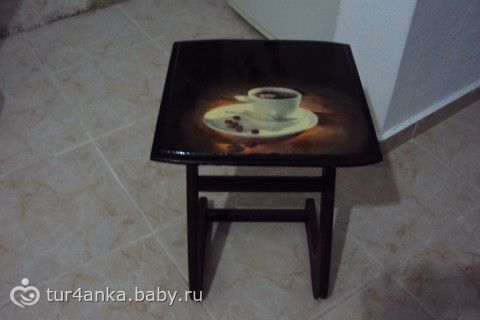 спасибо)))) нее)) это салфетка))) ну и конечно дорисовывать надо… а так это 3ий слой от трехслойной салфетки… а другое -распечатка лазерного принтера, но бумагу нужно истончить… там особая техника, а потом это все покрывается несколькими слоями лака и шлифуется наждачкой… я мужу в бар 7 столов сделала в такой технике.