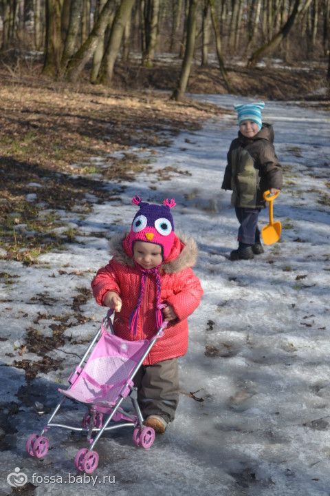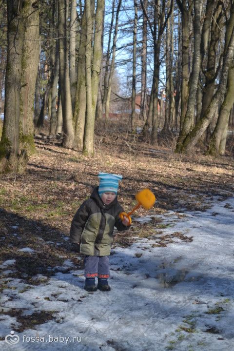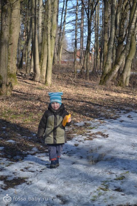 Покушали, поиграли и пошли на природу погулять) Первый выход в лес за всю прошедшую зиму))