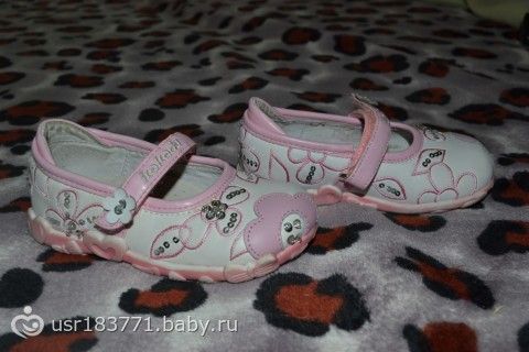 Платьице — на рост 80 — 86, можно даже до 90 см — -одевали два раза и туфельки кожаные, ортопедические, с твердым задником. Туфельки 21 р, по стельке 13.5 см. нам впритык, обували только в помещении, по улице даже не ходили.