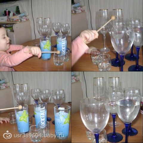 *** Пока дочурку бегала и играла сама, приготовила бокалы, фужеры, рюмки и устроили мы стеклянную музыкальную паузу))) Очень довольная Элиночка была! Вначале стучали легонько по пустым бокалам\фужерам\рюмкам, затем я наполнила некоторые до верха, другие наполовину водой и снова слушали музыку. На это ушло у нас минут 15-17. Не обошлось без воды на столе( Но это не страшно, тут же всё вытерли и продолжили))
