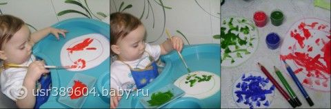 да, это уж так, мелочи, ничего вразумительного не говорит все равно.а кисточку она упорно берет в рот, и не хочет применять по назначению, пробовали водные раскраски.и мелки восковые она тоже только с упоением грызет...