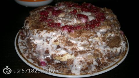 8. Достаем торт, украшаем по своему желанию. Можно посыпать крошкой от пряников, орехами, украсить кремом или полить растопленным шоколадом, ягодами… в общем тут работает Ваша фантазия и то что есть дома)))