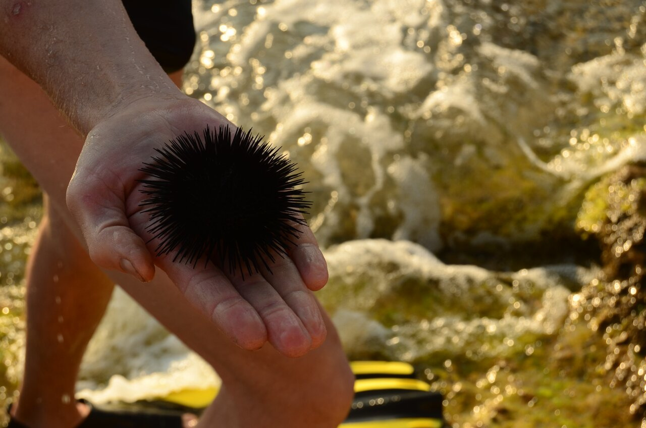 Каждый раз в море ловим какую-нибудь живность. Обычно осьминоги, морские ежи и морские звёзды.