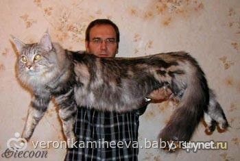огромный котяра. я просто 1 раз его видела дома у знакомого, это просто лев, был мне по колени, я только передние лапы подняла. а мяукал как маленький котеночек, кострировали рано) так смешно выглядело. еще оч красивые коты сомали. цвет необычный у них и хвост как у белки