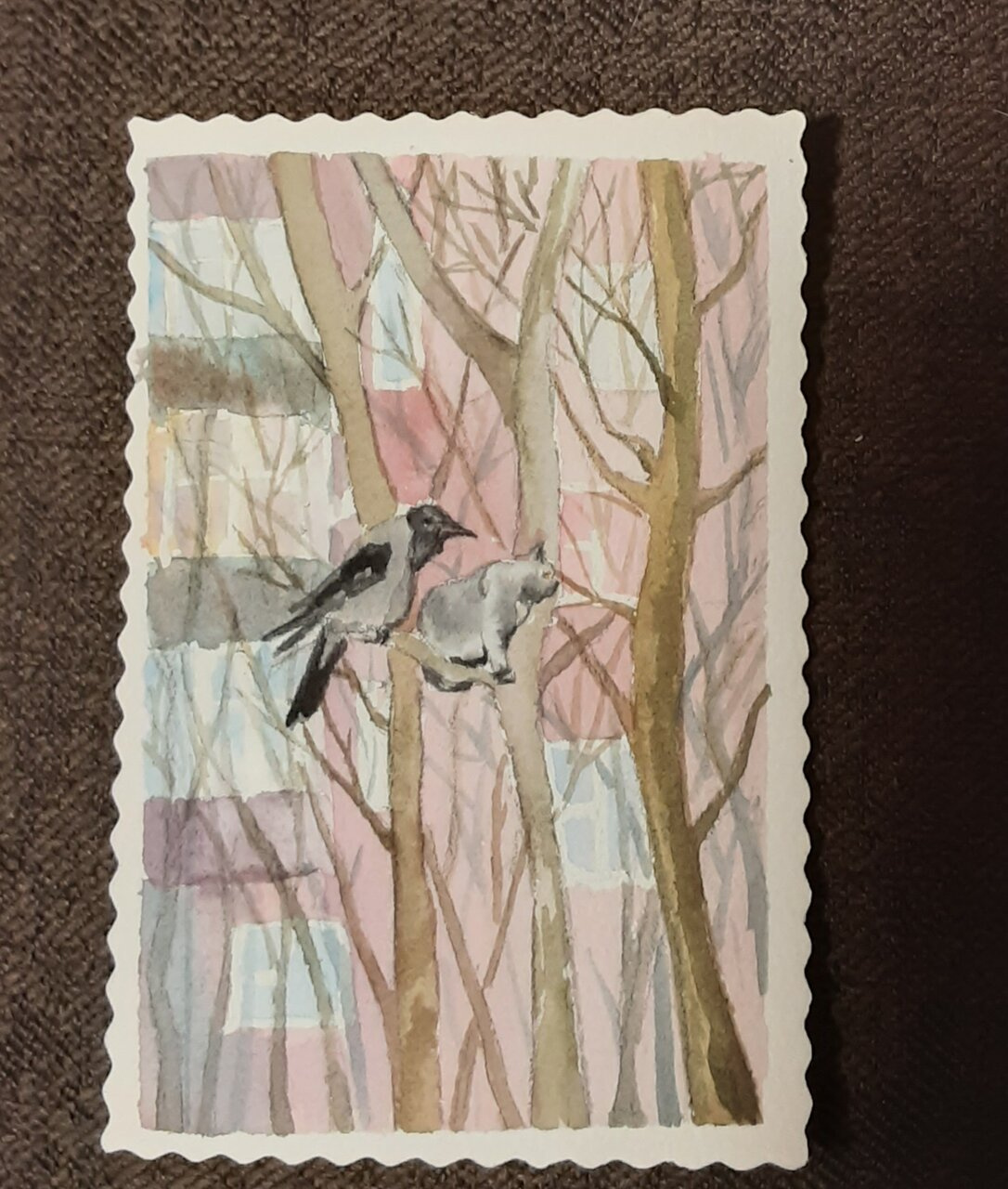 Давно у меня в голове сидела эта картинка,наконец-то вчера все уехали до вечера и я 5часов рисовала. Удалось наваять 3 открытки. Осталтные покажу потом. Спасибо за внимание)