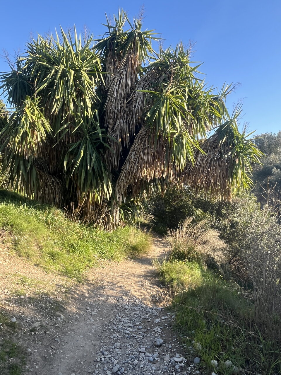 Парк этот очень большой. Идёт в гору и открывается красивый вид на Ниццу. Здесь есть тысячелетняя олива. Каждый раз к ней подхожу и думаю, сколько же она повидала. Кстати, обратите внимания, что голые деревья тоже есть. У нас часть деревьев с опадающими листьями.