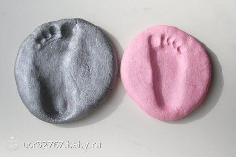 1/2 ст. соли, 1/2 ст. муки, 1/4 ст. воды. Замесите тесто. Сделайте отпечаток ноги ребенка. Выпекайте 3 часа при 200C'. Повторять каждое лето:) Можно сделать тропинку из этих следов)))