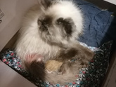 Родовая деятельность прошла. И того 3 котёнка. Один сразу умер, у него ужас что. Второй очухался, но скорее всего не выживет. Третий с выгнутыми лапками, но живчик. И мне кажется, ещё есть один внутри. ВетВрач посмотрел, сказал в понедельник привезти на осмотр ещё.