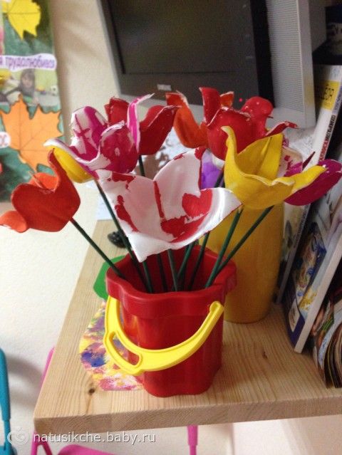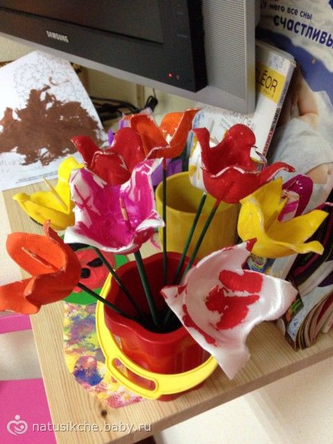 Меня прикололо, что они сделаны из формочки от яиц)) разукрашивали дети сами!