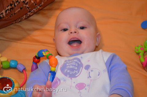 У Елисея вчера прорезался второй зубик! Нет особых капризов, слюней и тем более температуры, всё ровно. Нам 5 мес и 12 дней. Весит 8300 гр. но сегодня вечером зубы его очень беспокоили было видно, хотел спать и не мог уснуть. Папа стал носить его на руках не помогло. Я решила ему снова дать грудь, хотя до этого он ел и много срыгнул, видимо переел. Еще раз убеждаюсь, какое же волшебное средство женская грудь! Плакавший до этого мин 20 ребенок, взявши грудь сразу успокоился и уснул!!!