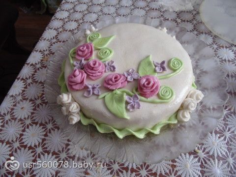 Смотрела я смотрела на фото с интернета как торты мастикой покрывают и решила сама попробовать… Конечно с мастикой малость намудрила (слишком быстро сохла она у меня… Наверно пудры слишком много)… В общем вот что вышло :)