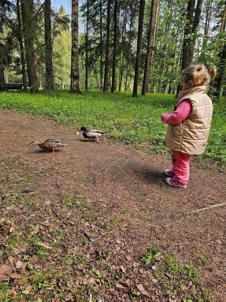 При моей тотальной нелюбви к детским площадкам, а так же в связи с увеличившимся количеством там гуляющим, было принято серьезное и волевое решение гулять в парке. И вот, мы взяли с собой клубнику, сушки, воду и все такое, с Богдашей пошли. И ни разу не пожалели. Погода сегодня позволяла гулять долго и хорошо (у нас тепло). В итоге, и уток кормили, и белок видели. И просто отлично прошлись. Ушли в 9 часов, вернулись к 12. Все счастливы)