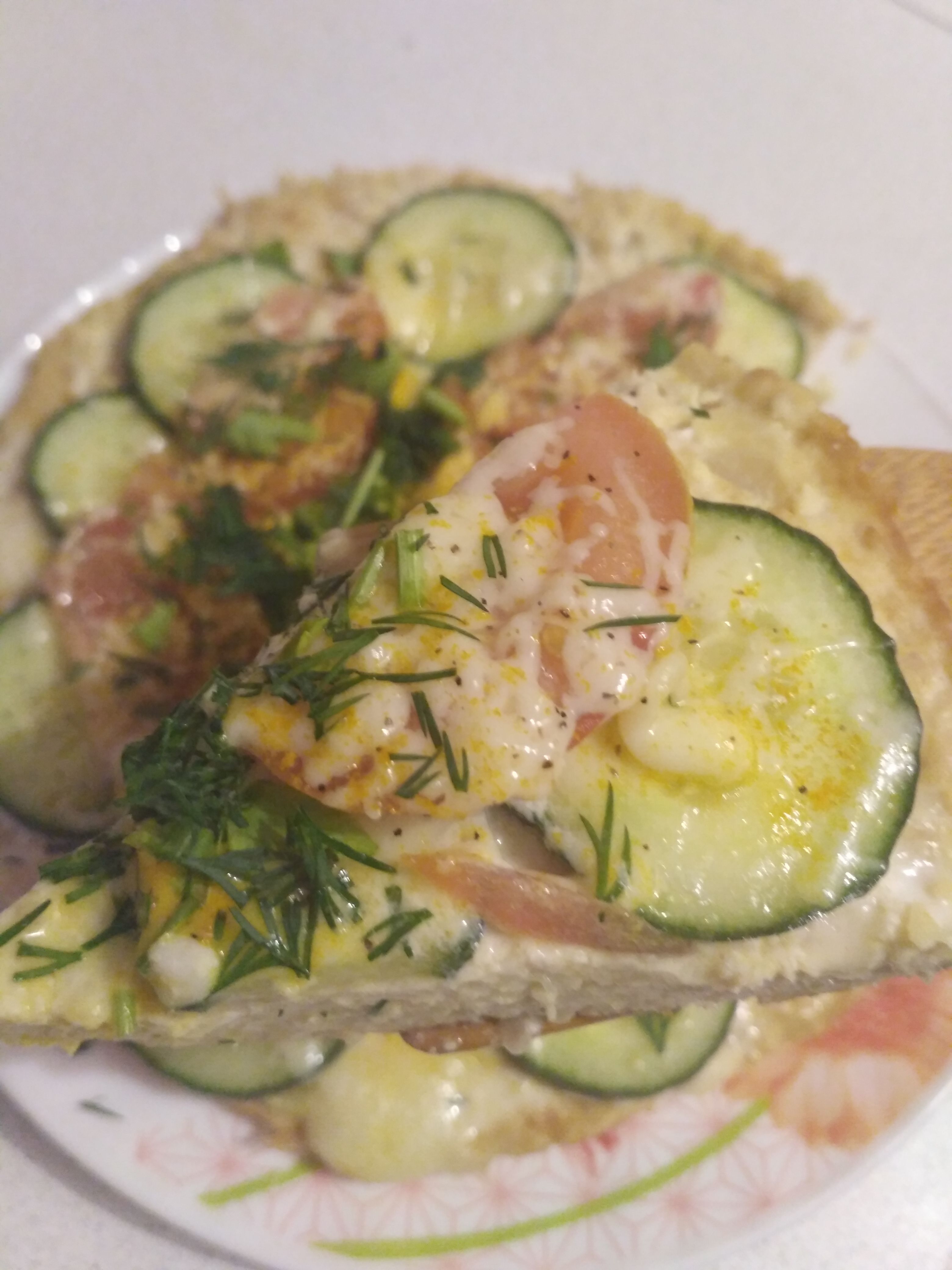 Тут используется пп основа для пиццы, я ее нашла в сборнике пп рецептов и уже опробовала в самых разных вариантах начинки.