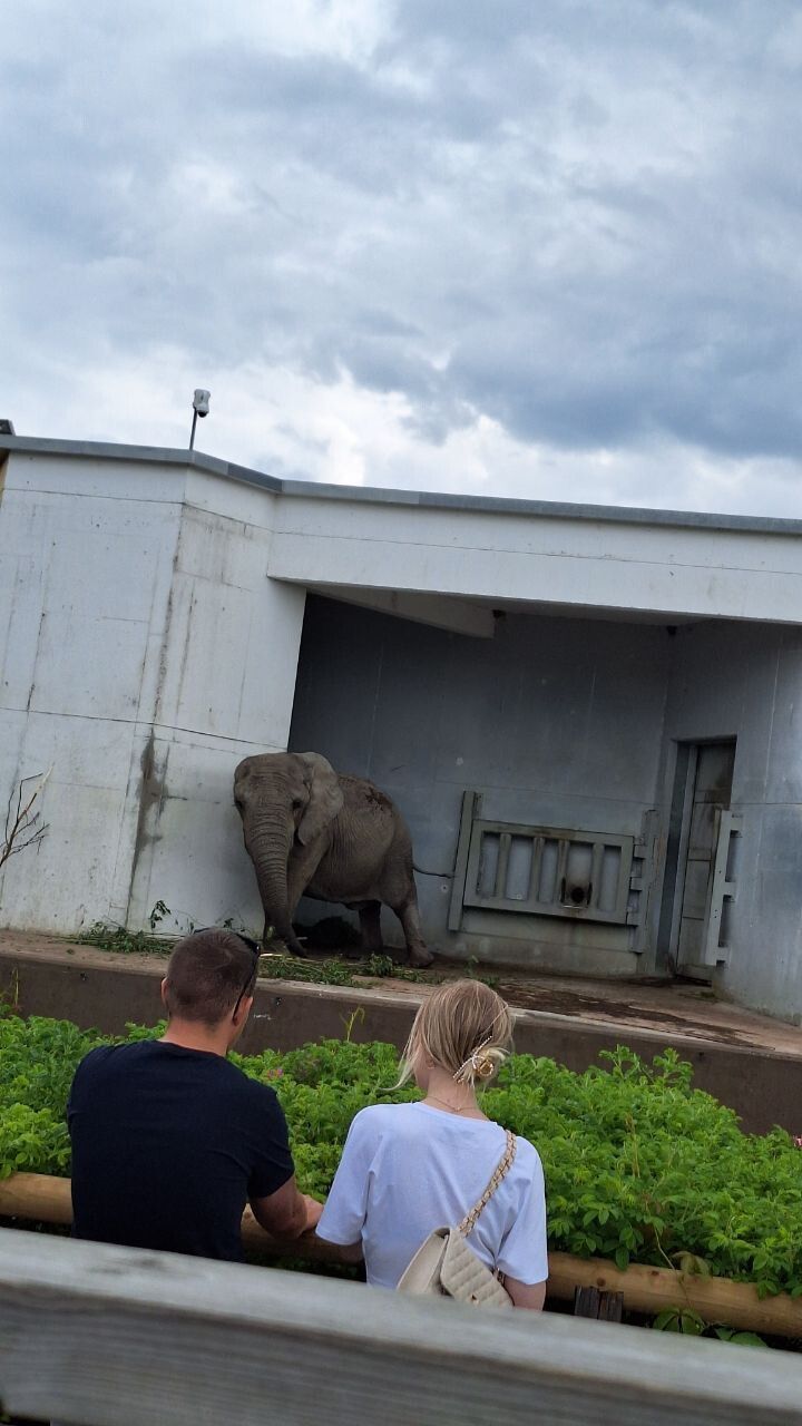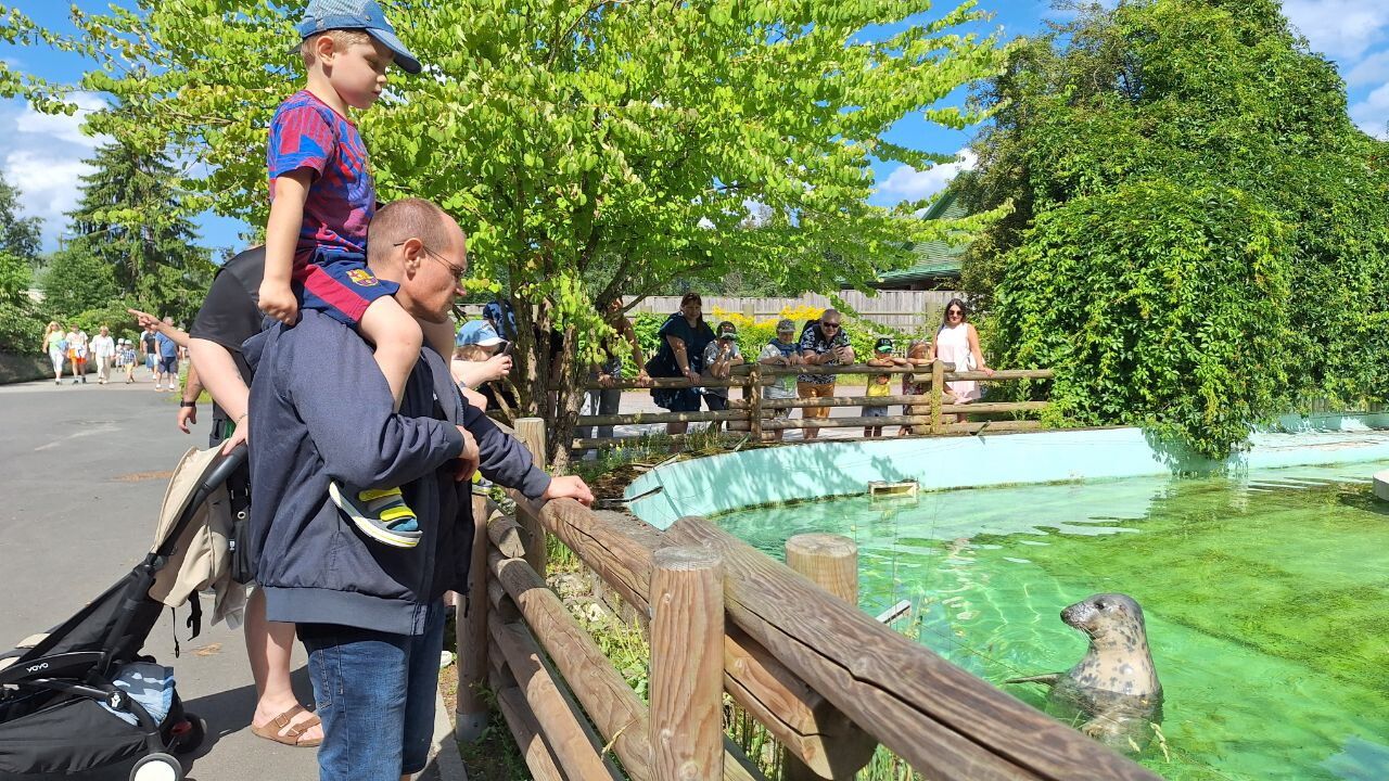 В зоопарке народа сегодня народа было мало. Мы поехали с утра.
