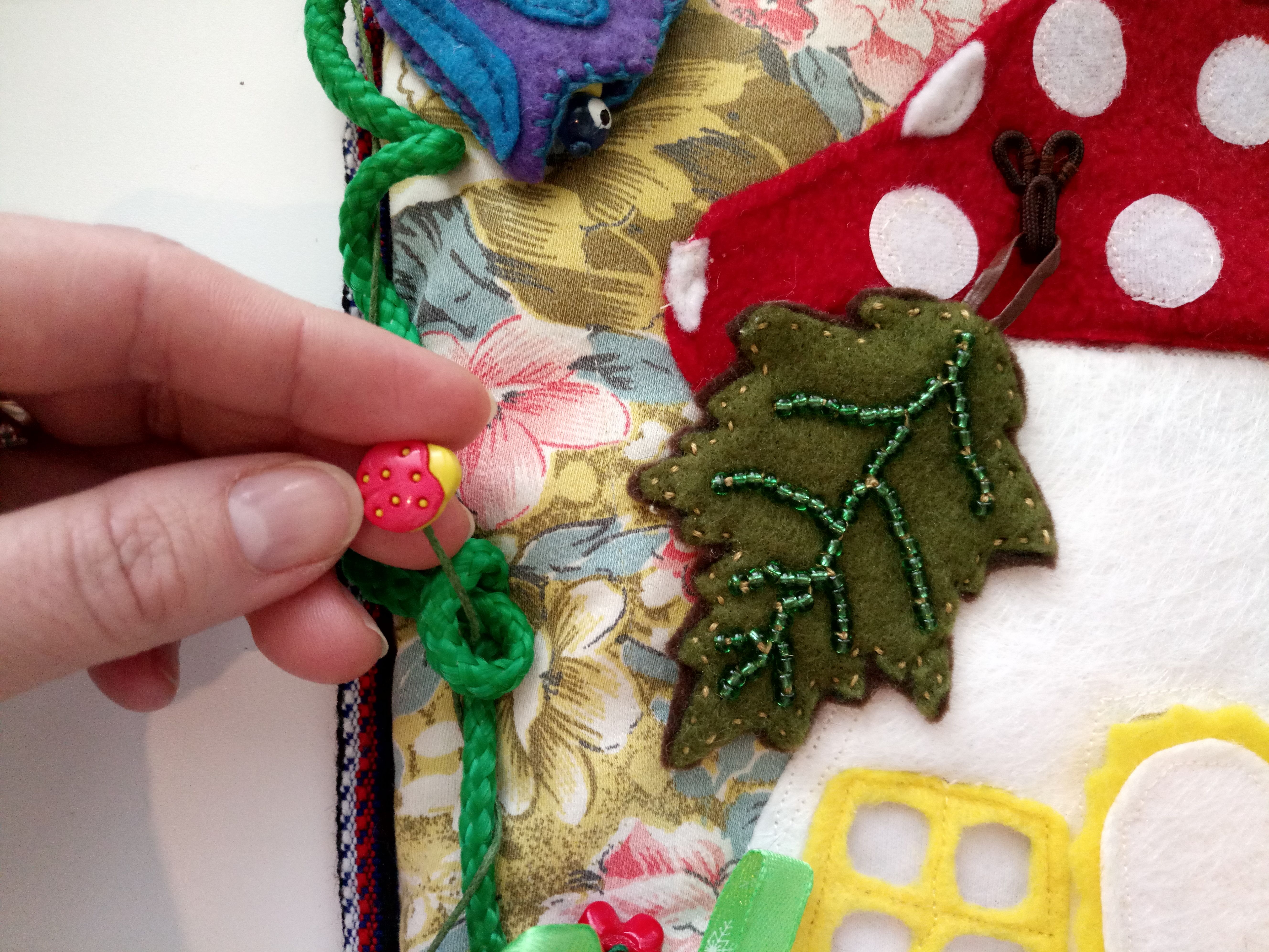 В общем, сшила я такую вот искалочку. Смысл в том, чтобы внутри солнышка найти такие же пуговички, как на лучиках. Лучики на липучках. Нашел ребенок нужную пуговицу — лучик … Читать далее