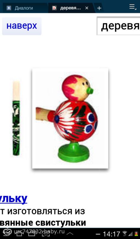у нас есть свистульки, дудочка, матрешки — все это сразу было не интересно, купили, когда ездили на экскурсию, а вот машинка с деревянными частями (колечки на проволоке), которые двигаются, очень любима.