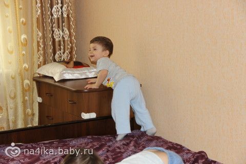залезают на комод и кричат чтобы их сняли оттуда, так страшно когда туда лезут