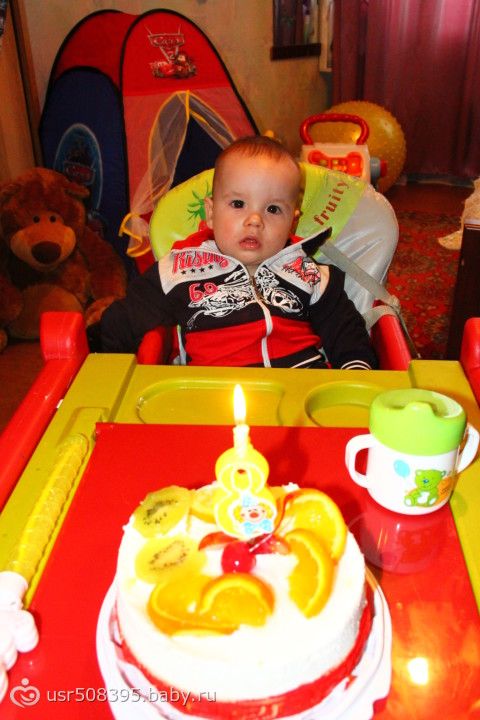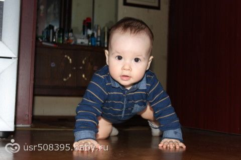 Вот нам исплнилось 8 месяцев, даже не верится!!!)))Такое ощущение что роды были вчера!!!!(( Мой мужчинка так быстро растет, уже ползает вовсю, два зубика нижних имеет, кушает все подряд, даже не знаю чем его можно уже удивить, будит меня по утрам криком «МАААМААА!»)))) Такой лапочка!!! 71 см, 9,8 кг. — это наши параметры))))) Ходить пытается уже, правда падает, а если ударяется, й как кричит....((Мой малыш!!!))) Поправился кстати всего на 100 гр. за месяц, это видимо из-за того что ползать начал!!!, А из-за зубиков почти не кушал ничего!!! Спит все так же с 18:00 до 06:00))) ну и днем пару часиков. На выходных поедем шопоголить, пора менять меховой комбез на красивенький пуховичек и джинсики))) да и ботиночки пора прикупить, пусть и на улице пытается ходить))) В общем все вроде отлично, ттт))