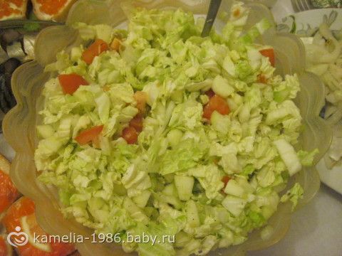 Мой самый любимый — салат из пекинской капусты с яблоком и сельдереем.