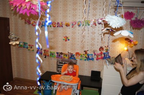 Праздновать начали в 14:00 спать легли в первом часу ночи. Сыночик у меня родился в 23:30 поэтому свечку мы задули именно в это время)) тортик для него делала с печенек детских и творожка с черникой и ябоко начинка чтоб он его мог есть, так как «взрослый» торт ему пока нельзя. Зато этот ему очень понравился, сам отщипывал пальчиками и ел))