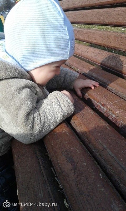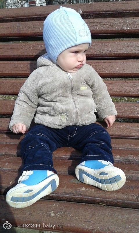 А сегодня гуляли в новых ботиночках, топали) Сначала не понял чего его поставили на улице, а потом довольный пошёл:)